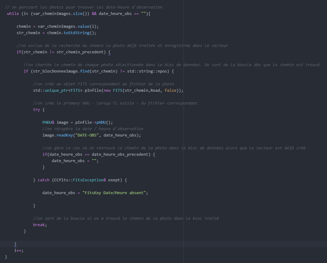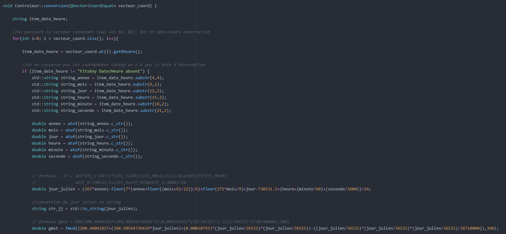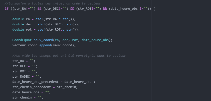 Toutes ces données réunies au format « string », il a fallu les extraire et les convertir au format « int ». C’est le contrôleur qui s’en occupe. Je récupère toutes les variables issues de « solve-field » en découpant les chaines stockées dans mon QByteArray.