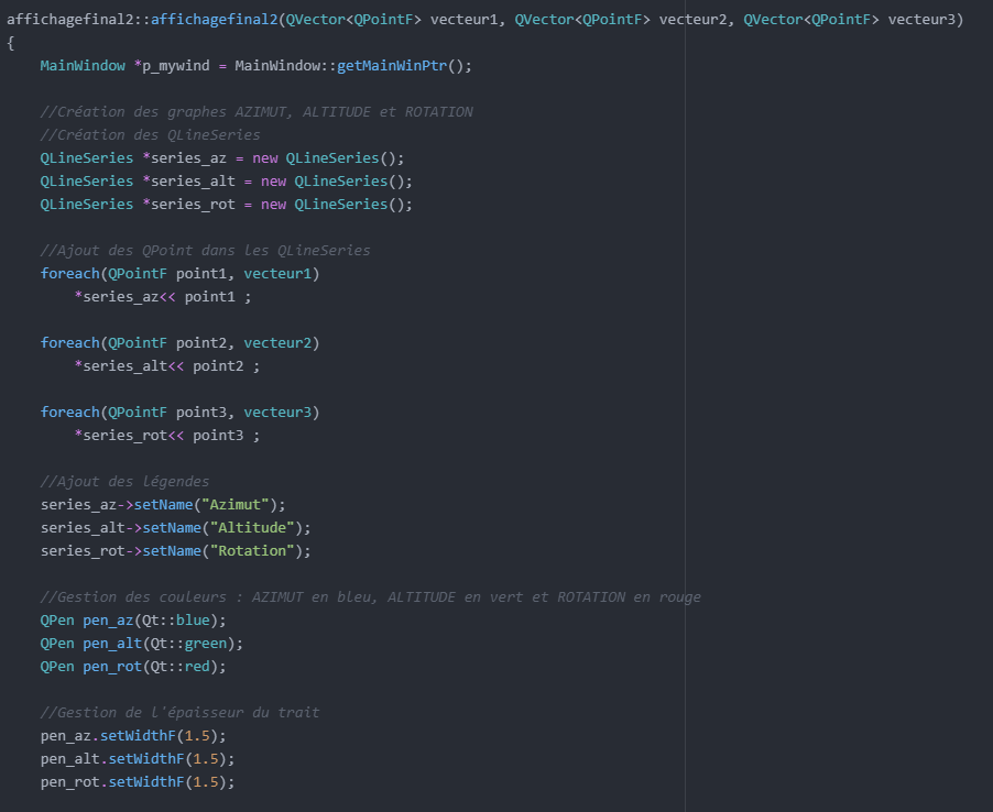 Tous les QPoints étant créés, il fallait les afficher dans un graphique. J’ai mis en place trois affichages différents que j’ai commenté dans le code.