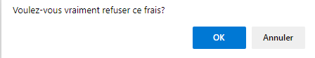 - Soit « refuser » un frais hors forfait : un popup apparait pour valider le refus :