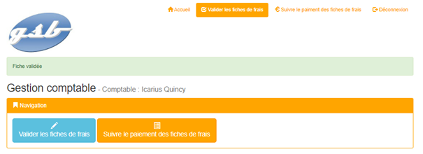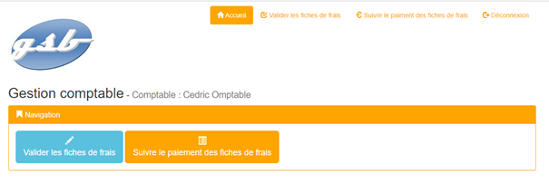 Une fois connecté, le comptable se verra proposé de valider une fiche de frais ou de suivre le paiement des fiches de frais.