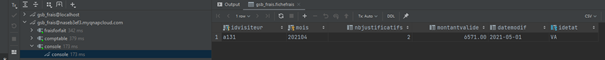 Ainsi dans la base de données, nous retrouvons l’état « validé » (VA) de la fiche de frais de mois d’avril 2021 du visiteur Villachane (idvisiteur = a131).