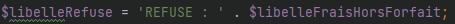 Mais avant, grâce à la concaténation, j’ajoute le mot « REFUSE : » devant le libellé.