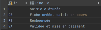 Puis le comptable se verra proposé de choisir parmi la liste de fiches de frais clôturées (état « CL »). Ici, c’est un choix que j’ai fait pour éviter que le comptable ne corrige une fiche de frais en cours ou déjà remboursée. (Ici, il y a un axe d’amélioration en prévenant le comptable lorsqu’il n’y a plus de fiche de frais clôturée pour un visiteur).