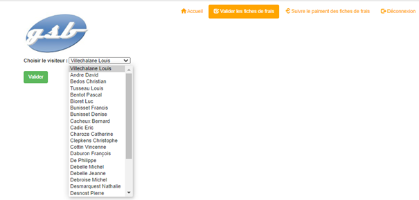 Pour valider une fiche de frais, le comptable devra d’abord choisir un visiteur dans une liste déroulante
